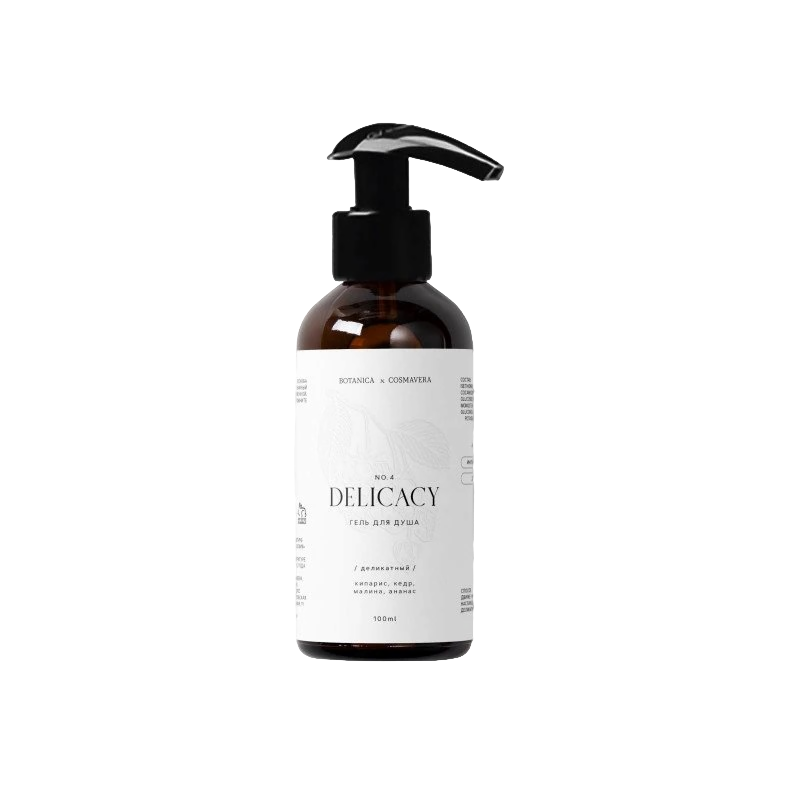 Delicacy no.4 - это яркий, древесно-ягодно-фруктовый аромат, сочетающий в себе верхние сочные ноты ананаса и манго, а в сердце аромата раскрываются терпкие кедр и кипарис и сладкая малина Перламутровое сияние текстуры, пушистая нежная пена, и, традиционно, деликатный, бережный состав — это всё о нем.